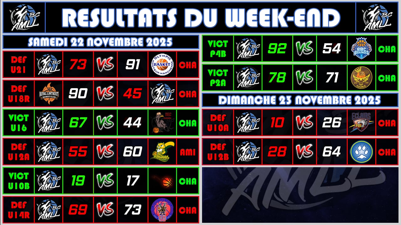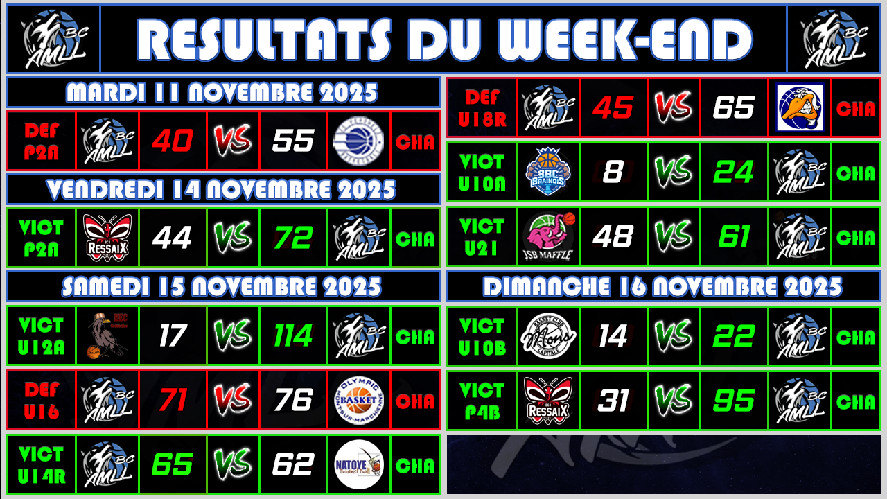 VOICI LES RESULTATS & DEBRIEFING DU WEEK-END DE NOS EQUIPES