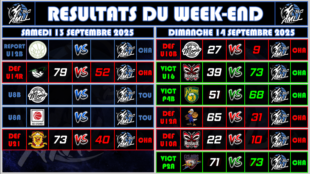 sept. 15 RESULTATS DU WEEK-END DU 13 & 14 SEPTEMBRE 2025 VOICI LES RESULTATS & DEBRIEFING DU WEEK-END DE NOS EQUIPES