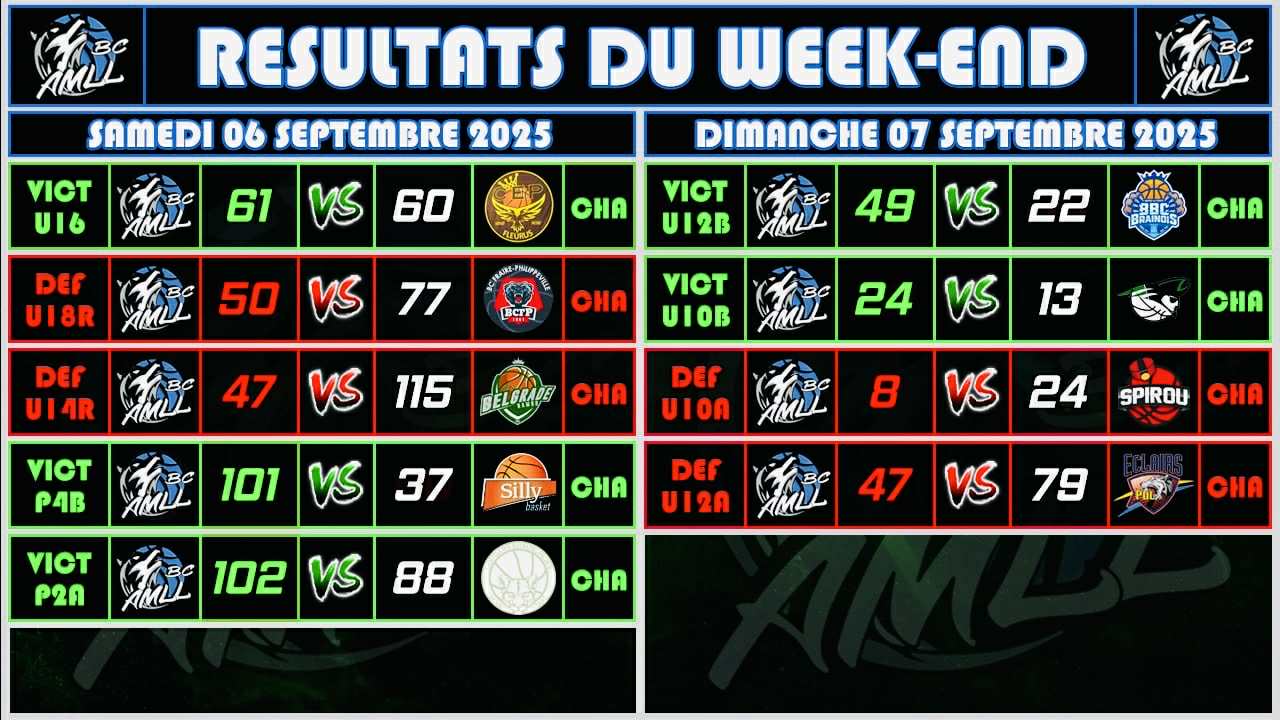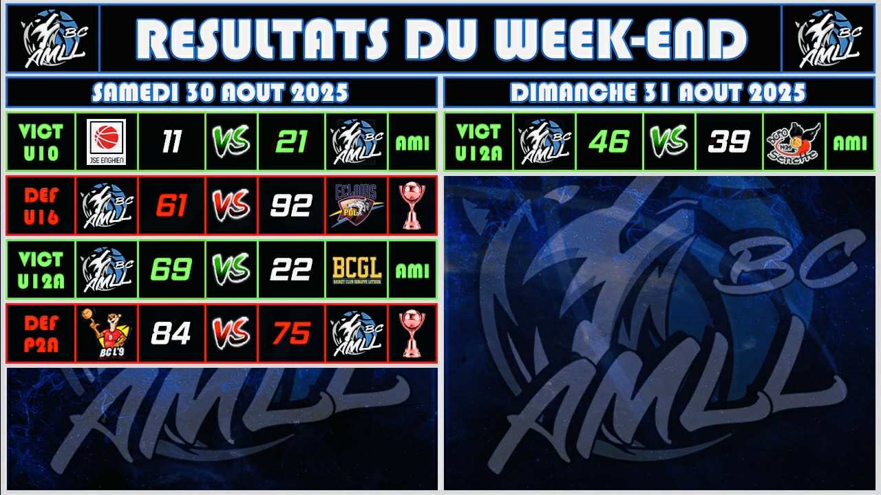 VOICI LES RESULTATS & DEBRIEFING DU WEEK-END DE NOS EQUIPES